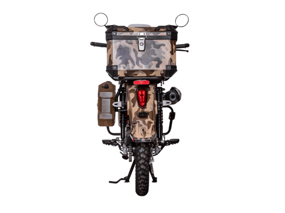ATAKI Yemi Hunter – стильный мопед для настоящих охотников и рыбаков. Юркая модель с камуфляжным принтом и объёмными кофрами, готовая отправиться на лесные тропы.Силовая установка представлена одноцилиндровым 4-тактным двигателем с воздушным охлаждением. При объёме 120 см³ двигатель способен обеспечить мощность в 8,8 л.с. Бесперебойную работу в любых условиях обеспечивает карбюраторная система подачи топлива. Запуск двигателя осуществляется с помощью электростартера или кикстартера. Полуавтоматическая коробка передач имеет 4 ступени.Максимальная скорость 80 км/ч.Объём топливного бака 4,5 литра.На мопед установлены колёса диаметром 17 дюймов. Передняя подвеска – классическая телескопическая вилка, подвеска сзади – 2 гидравлических амортизатора. На оба колеса установлены гидравлические дисковые тормоза.Вес 102 кг. Колёсная база 1245 мм. Высота по седлу 765 мм.