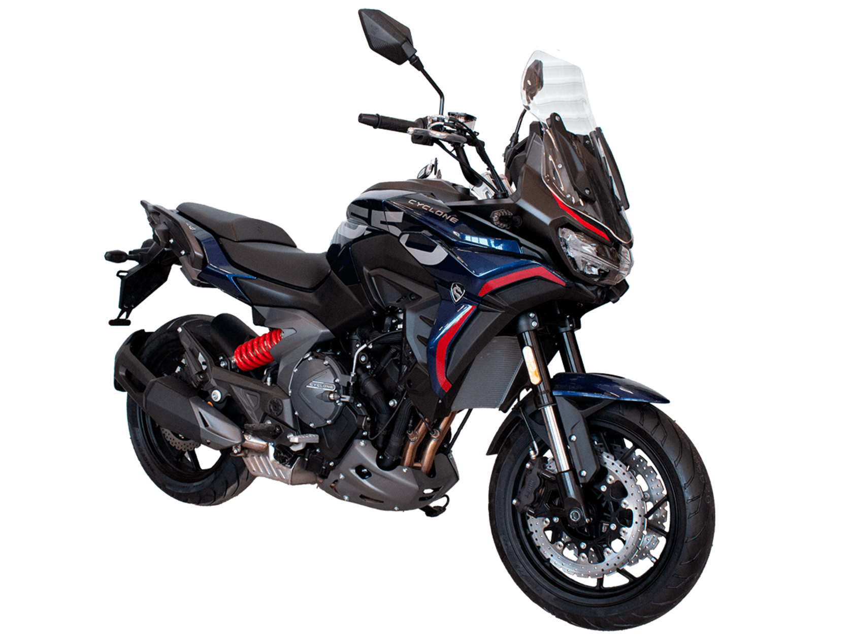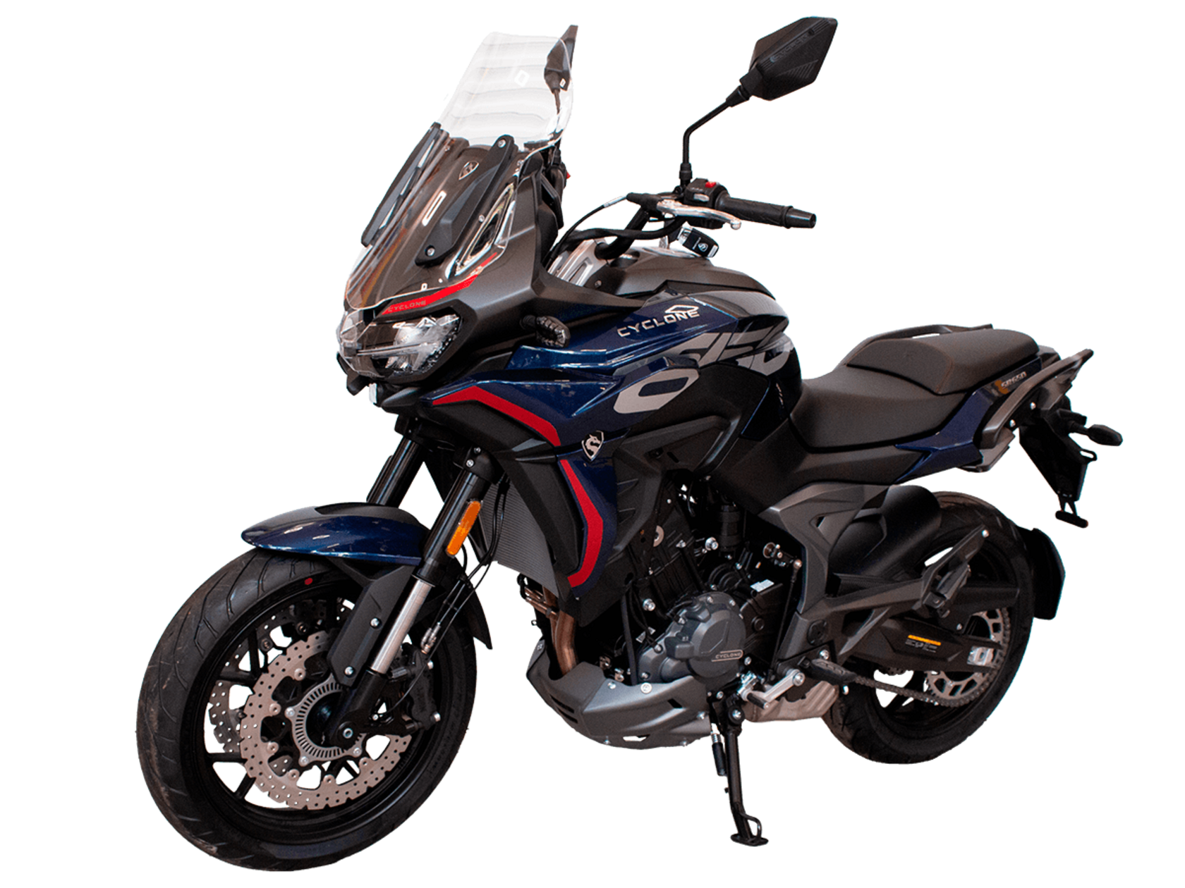 CYCLONE RX6 (SR650) – туристический эндуро для покорения самых непростых и протяжённых маршрутов. Он обладает агрессивным и современным дизайном, который выгодно выделяет его из всех остальных мотоциклов в своём классе. Мотоцикл дарит своему владельцу абсолютную свободу передвижения, позволяя долго и быстро ехать по шоссе, а при желании съезжать на такие дороги, по которым не проедет ни один дорожный мотоцикл. Небольшие габариты этого байка позволяют с успехом использовать его, как повседневный дорожный мотоцикл.Данная модель является самой крупнокубатурной в модельном ряде компании CYCLONE. Рядный двухцилиндровый четырёхтактный двигатель объёмом 650 см3 выдаёт мощность в 71 л.с. на 8500 об/мин. Максимальный крутящий момент достигается на 7000 об/мин и составляет 62 Н·м. Инжекторный впрыск топлива с блоком управления BOSCH увеличивает топливную экономичность, а также позволяет добиться высокой приёмистости и неприхотливости агрегата. Жидкостная система охлаждения не допустит перегрева двигателя даже при самом агрессивном вождении. На мотоцикл установлена 6-ступенчатая механическая коробка передач.Максимальная скорость мотоцикла составляет 180 км/ч.Модель оснащена литыми алюминиевыми дисками диаметром 17 дюймов. Колёса обуты в бескамерные покрышки от легендарной фирмы PIRELLI. С неровностями дороги эффективно справляются компоненты производства культовой японской компании KYB – телескопическая вилка перевёрнутого типа спереди и маятник с моноамортизатором сзади. Ход передней подвески составляет 130 мм, задней – 51 мм. Оба компонента подвески являются регулируемыми. Эффективное и безопасное замедление с любых скоростей обеспечивают гидравлические дисковые тормоза с двухканальной системой ABS спереди и сзади. Тормозные системы произведены известной испанской фирмой J.JUAN (входящей в легендарный холдинг BREMBO).Мотоцикл отличает хорошо продуманная компоновка с высоко расположенным радиатором. Высота 820 мм по седлу позволяет чувствовать себя комфортно даже райдерам небольшого роста. На данной модели установлена металлическая защита выхлопной системы и масляного фильтра. Под пассажирским сиденьем размещён небольшой, но крайне полезный набор инструментов.RX6 (SR650) оснащён бортовым компьютером с информативным цветным дисплеем и кнопками управления на руле, а также двумя штатными видеорегистраторами спереди и сзади. Из других приятных мелочей в допоборудовании мотоцикла стоит выделить регулируемое при помощи кнопки ветровое стекло, датчики давления в шинах, подсветку пультов, бесключевой доступ и 2 USB-порта.Клиренс мотоцикла составляет 165 мм. Объём топливного бака – 20 л. Снаряжённая масса – 245 кг.Мотоцикл сочетает в себе отличные технические характеристики, богатое оснащение, комфорт и надёжность, что позволяет вам ощутить настоящую свободу, отправившись на нём в любое путешествие.