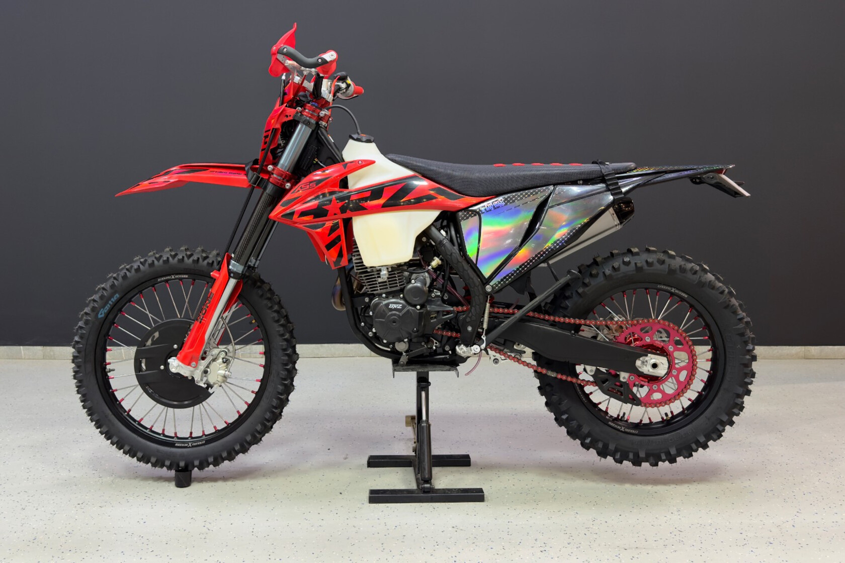 Мотоцикл BRZ X5S 2023 года - полноразмерный эндуро мотоцикл. Он специально создан для райдеров, которые уже выросли из питбайка и хотят раздвинуть свои пределы.Он подойдет и начинающим эндуристам с ростом от 175 см. X5S идеально себя чувствует в лесных прохватах с преодолением различных препятствий благодаря небольшому весу, тяговитому двигателю и большим колесам 21/18.Мотоцикл максимально упрощен для большей надежности. Из электрики он снабжен светодиодной фарой, электростартером. Установлен двигатель Zongshen ZS172FMM-7 4V с балансировочным валом. По сути в нем просто нечему ломаться, можно смело ездить в лесные мото походы на 40 - 200 км. Инженеры BRZ moto учли все ошибки конкурентов и снабдили мотоцикл качественными подвесками и алюминиевыми ободами Enduro X-Series. Был переработан узел верхнего крепления двигателя к раме, избавивший от повышенных вибраций. Ведомую звезду закрепили на 6 потайных болтов. Ну и не стали экономить на карбюраторе - в базе установленNIBBI RACING BLACK PWK32! Подведя итог можно смело заявить что X5S - идеальный выбор для тех, кто хочет купить настоящий мотоцикл!