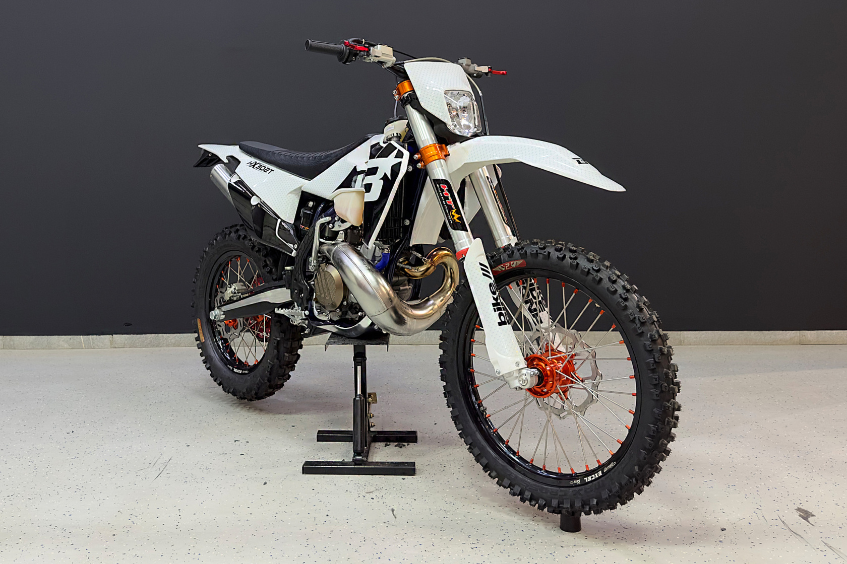 Навесное – Руль усиленный переменного сечения, алюминиевый, PRO CAKEN, сплав 7075. Короткоходная ручка газа. Рычаги тормоза и сцепления регулируемые, складные. Алюминиевые траверсы CNC (фрезерованные). Звезда – передняя 13 / задняя 52. Цепь без сальников CHOHO 520HS (супер усиленная). Накладки на раму в районе подножек. Защита двигателя. Алюминиевая лапка КПП. Счетчик моточасов.