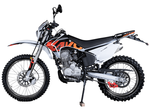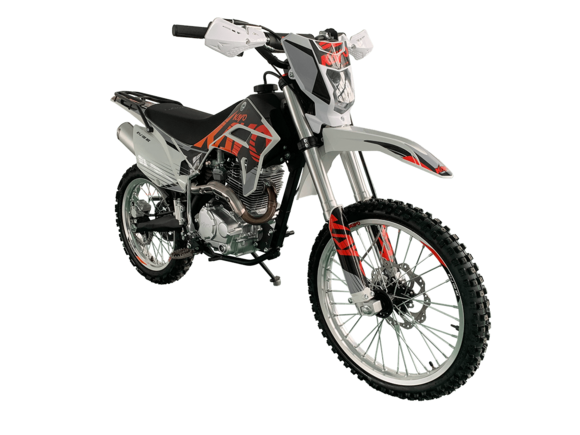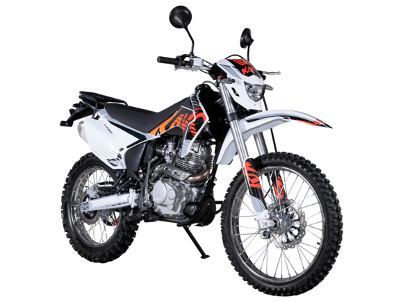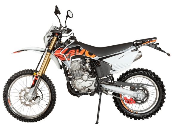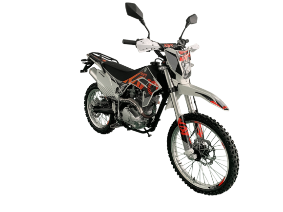 Мотоцикл KAYO K1-L 250 MX – “народная” версия внедорожного мотоцикла от компании KAYO 2024 модельного года. В его основе лежит проверенный временем двигатель, который обеспечил модели мировую популярность. Идеальный снаряд для внедорожного экстрима, представляющий собой оптимальный баланс производительности и технической оснащённости. Удобный, простой и надёжный мотоцикл, который полностью оправдывает свою цену.Мотоцикл оснащён одноцилиндровым 4-тактным двигателем воздушного охлаждения YX166FMM объёмом 223 см3, который выдаёт 17 л.с., что позволяет развивать большую скорость и с лёгкостью преодолевать трассы со сложным рельефом. Карбюраторная система подачи топлива с карбюратором PZ27 обеспечивает бесперебойную работу техники в самых жёстких условиях эксплуатации, простоту и лёгкость в обслуживании, а также неприхотливость к качеству топлива. Аппарат оснащён 5-ступенчатой механической коробкой передач с классической схемой “1-N-2-3-4-5”.Компания KAYO самостоятельно разработала раму и пластик на данном мотоцикле.Передняя подвеска – телескопическая регулируемая вилка перевёрнутого типа длиной 800 мм, задняя — нерегулируемый моноамортизатор длиной 360 мм, рассчитанный на высокие нагрузки до 900 LBS. Мотоцикл оснащён классическими спицованными колёсами диаметром 18 и 21 дюйм с прочными стальными ободами. Эффективное и безопасное замедление с любых скоростей обеспечивают гидравлические дисковые тормоза.Мотоцикл достаточно компактен и имеет вес всего 105 кг, поэтому он комфортен в эксплуатации одновременно и для мужчин среднего телосложения, и для девушек. Объём топливного бака составляет 6,7 л. Аппарат оснащён системой запуска двигателя при помощи кнопки электростартера или при помощи рычага кик-стартера.Высококачественная износостойкая резина с развитым протектором отлично держит дорогу на различных типах покрытия и в самых разных поворотах. Сиденье эргономичной формы покрыто антискользящим материалом. Яркая линзованная светодиодная фара позволяет кататься в тёмное время суток.K1 250 MX сочетает в себе отличные технические характеристики, комфорт и надёжность, что позволяет вам ощутить настоящую свободу на любой трассе.