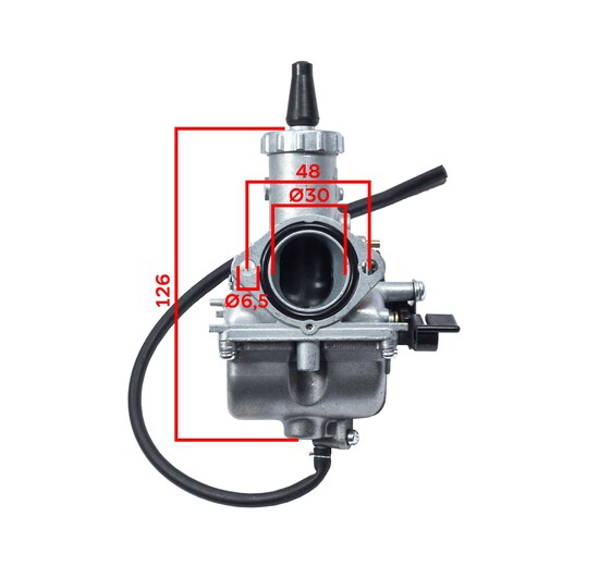 Карбюратор Mikuni VM 26, надежный и эффективный карбюратор для питбайков объемом от 140 до 170 см 3. Данный карбюратор штатно устанавливается на питбайки ведущих производителей. Карбюратор изготавливается Японской корпорацией Mikuni. Производственные мощности корпорации расположены в Китае. Характеристики карбюратора: Фланцевое крепление к впускному коллектору двигателя. Диаметр впускного патрубка под воздушный фильтр 45 мм. В стоке, в карбюратор установлены жиклеры -главный 100 и жиклер холостого хода 20. Оснащен ступенчатым рычагом управления обогащением топлива. Управление обогащением производится регулировкой подачи воздуха в смесительную камеру. Mikuni VM 26 позволяет добиться максимальной отдачи двигателя во всех диапазонах работы, при правильно подобранных жиклерах и соответствующих регулировках. Применяется практически к любым двигателям питбайков.