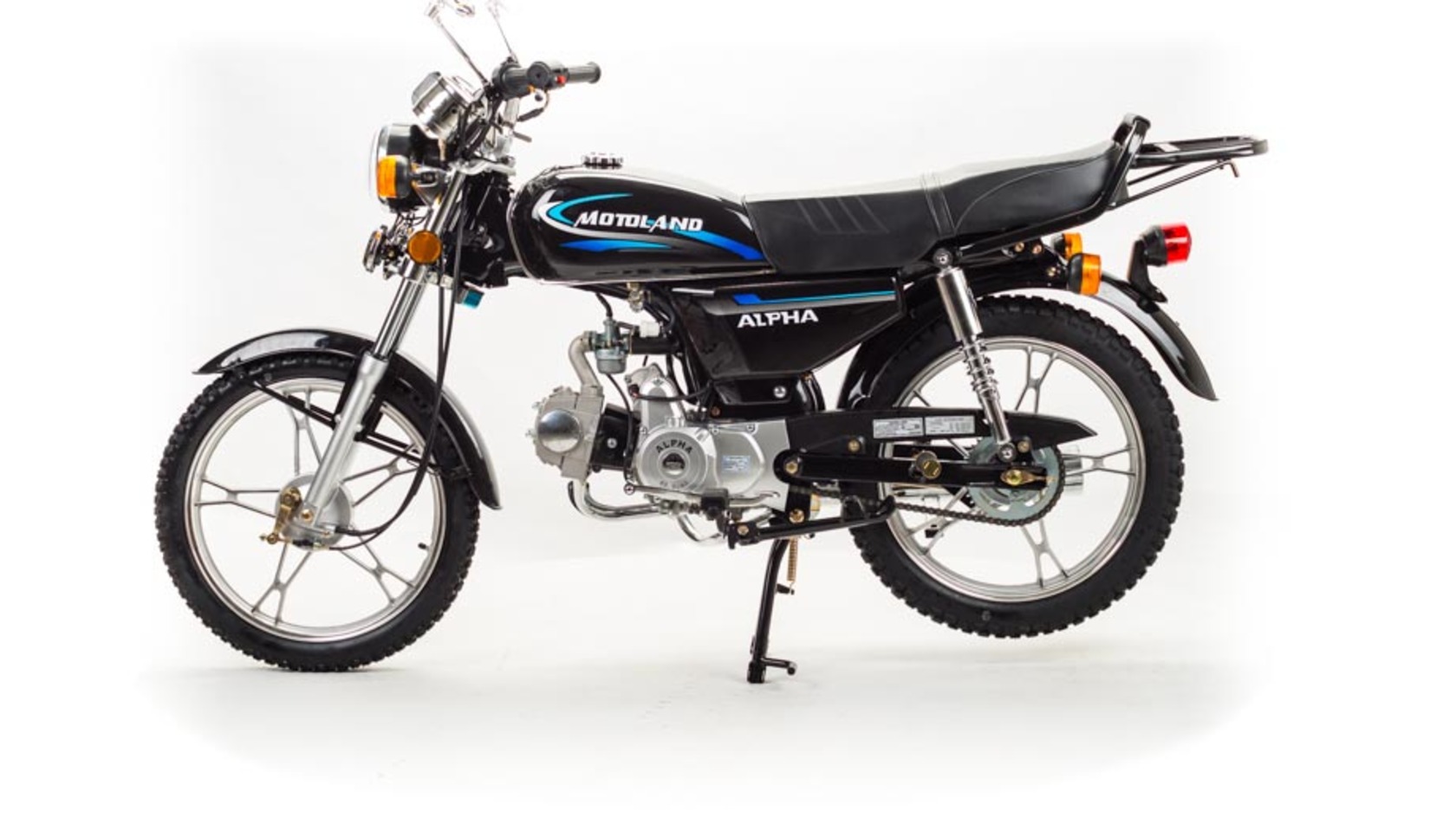 MotoLand Alpha 11 это всеми полюбившейся мопед который не нуждается в представлении.Мопед можно использовать для самых различных целей: для одиночного или совместного передвижения в городском потоке, сельской местности, поездки на природу, рыбалку и охотуПри этом он универсален и подходит мотолюбителям любого возраста,и опыта вождения.Для подростков, подойдет как подарок и первый мотоцикл для только начинающего свое знакомство с миром мототехникиВзрослых, которым нужна техника для поездок из точки А в точку Б и обратно, именно в таком режиме он способен показать себя с лучшей стороны.Мопед полностью отвечает требованиям к безопасному движению по городу и за городом: оснащен фарой дальнего и ближнего света, поворотниками, стоп-сигналом, звуковым сигналом, зеркалами заднего вида, габаритными светоотражателямиДля того чтобы ездить на мопеде, нет необходимости в регистрации в ГАИ и страховка.Техническая сторонаМопед поставляется с 50 кубовым одноцилиндровым четырехтактным двигателем с воздушным охлаждением ZS50-A (139FMB) конструкция которого полностью повторяет знаменитый мотор HONDA CUB.Установлен карбюратор PZ19 с системой обогащения и пуском в любую погоду и время года.Двигатель работает ровно, имеет высокую мощность в широком диапазоне оборотов, что позволяет комфортно трогаться и быть уверенным, что двигатель не заглохнет в неподходящий момент.Двигатель имеет возможность легкого запуска с кнопки на руле, так как имеет электростартер, а при необходимости можно воспользоваться кик стартером.Механическая трансмиссия содержит 4 передачиМопед имеет хорошую динамику разгона, расход 3 л на 100 км, объем бака 7л, которого хватит на 200+км