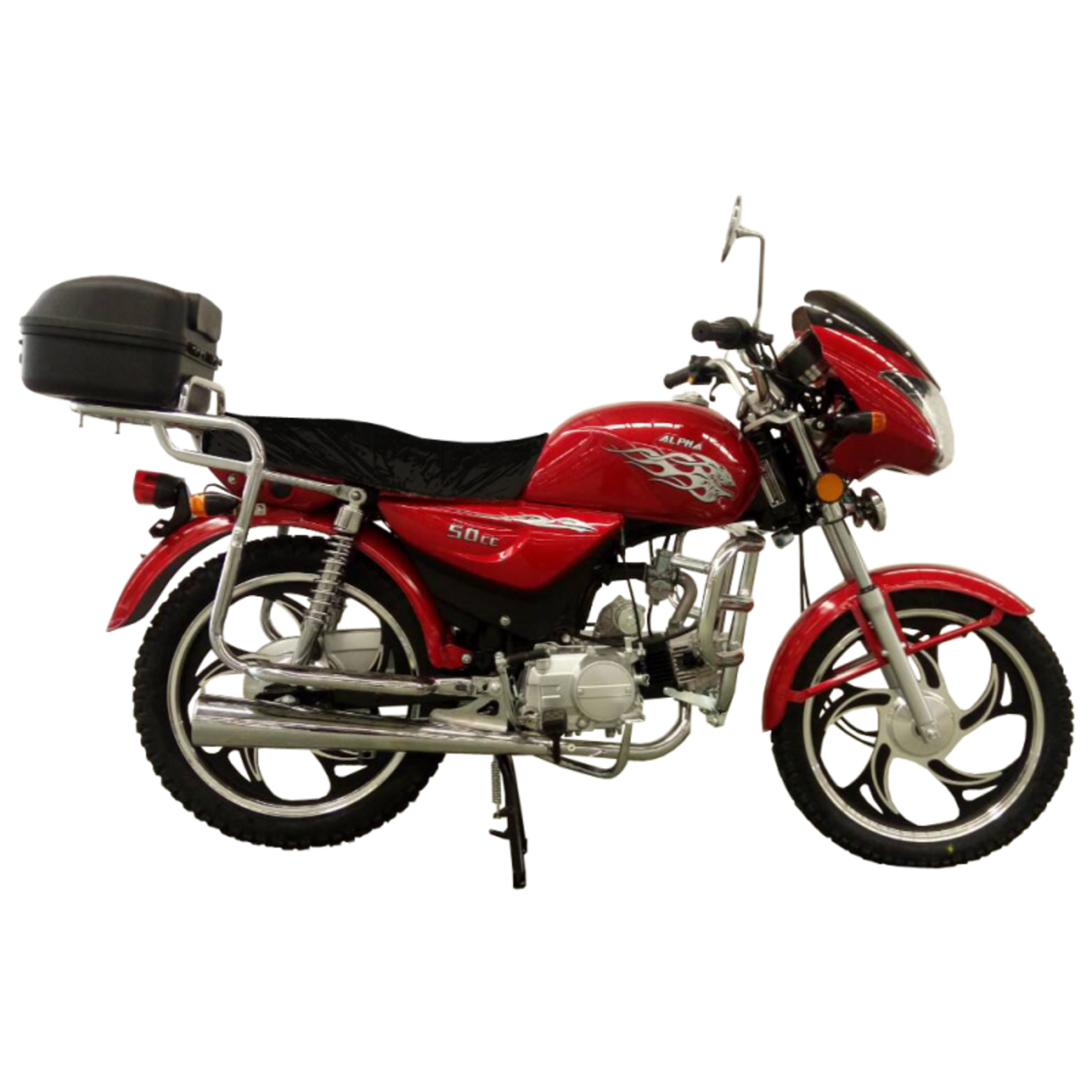 Эконика Альфа Рестайлинг «живая классика» китайской мотоиндустрии, один из самых доступных представителей двухколесного транспорта утилитарного назначения. Новое поколение Alpha готово продемонстрировать улучшенные показатели производительности, высокую надежность в повседневной эксплуатации и традиционную неприхотливость в сервисном обслуживании.Данный мопед комплектуется надежным «кабовским» двигателем – одноцилиндровым 4-тактником воздушного охлаждения с 4-ступенчатой трансмиссией. Рабочий объем мотора 50см3 благодаря установке нового комплекта ЦПГ на заводе-изготовителе. Запуск двигателя возможно осуществить как при помощи кнопки электрострартера, так и при помощи рычага традиционного кик-стартера. Увеличение рабочего объема мотора заметно сказывается как на максимальной развиваемой мощности, которая составляет чуть больше семи лошадиных сил, так и на эксплуатационных характеристиках техники.Среди других усовершенствований комплектации обновленного Альфа Установлен полный комплект светотехники, зеркала заднего вида, аналоговая приборная панель, на которой отображаются пробег, скорость, выбранная передача, обороты двигателя, индикаторы работы поворотников и фары. Также имеются подножки для пассажира, багажный кофр, кожух защиты цепи и дуги безопасности.Владелец новенького Эконика Альфа Рестайлинг по достоинству оценит экономичный двигатель, высокую надежность конструктивных решений и доступную стоимость сервисного обслуживания техники. Мопед полностью готов к комфортному использованию на дорогах города и проселках пригорода и способен успешно справляться с широким кругом эксплуатационных задач.