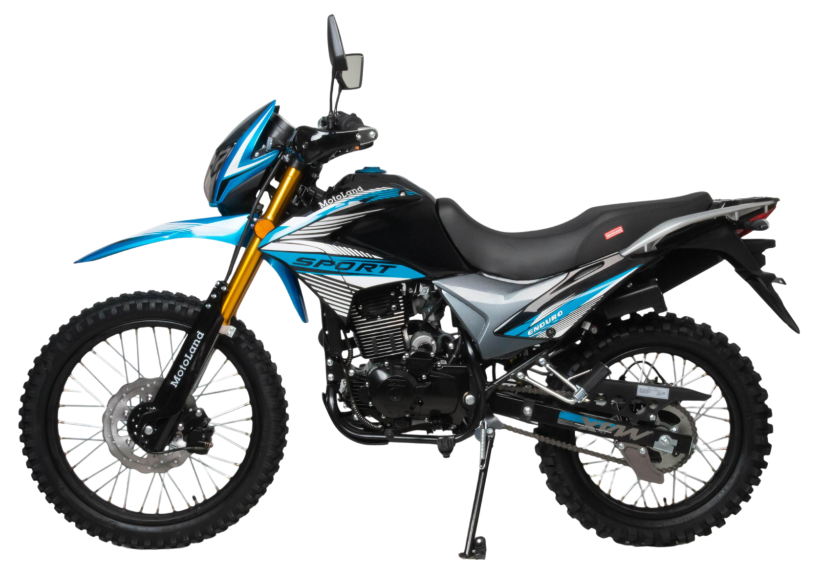 Прочность, мощь и надежность – вот ключевые характеристики кроссового мотоцикла 300 ENDURO ST NEON от бренда MOTOLAND. Этот байк представляет собой идеальное сочетание высоких технологий и безупречного дизайна, созданного для тех, кто стремится преодолевать любые трудности на дороге.Одной из важнейших особенностей этой модели является ее мощный двигатель с рабочим объемом 300 см3 и маркировкой 175 FMN PR5. С мощностью в 25 лошадиных сил и балансирным валом, этот мотоцикл готов преодолевать самые сложные трассы.Что касается трансмиссии, то здесь применена механическая передача с пятью ступенями и цепным ГРМ, что обеспечивает плавное переключение передач и высокую надежность в эксплуатации.Система охлаждения воздушно-масляная, что дает эффективное охлаждение двигателя в самых экстремальных условиях. А при запуске мотоцикла вы сможете воспользоваться как электростартером, так и кикстартером, делая его надежным в любой ситуации.Карбюратор PZ34 и свеча зажигания D8EA гарантируют оптимальную работу двигателя на любых режимах, а использование бензина с октановым числом 92 обеспечивает экономичный расход топлива.Этот мотоцикл оснащен спицованными металлическими колесами размером 90х100 R21 спереди и 110х100 R18 сзади, что обеспечивает отличное сцепление с дорогой и устойчивость на пересеченной местности.Приборная панель выполнена в формате LCD, отображая ярко и четко информацию о состоянии мотоцикла. А линзованная диодная фара и задний стоп-сигнал гарантируют безопасность в ночное время и обозначают ваше присутствие на дороге.
