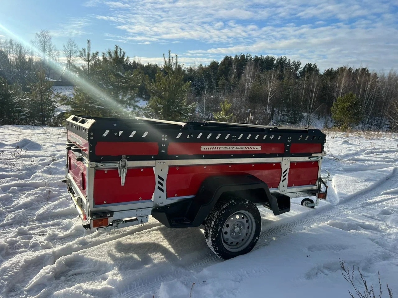 Прицеп VOYAGE Classic 2,0 Бортовой, туристическая крышка с багажником, высота внутри 530 (ш. 1,3; д. 2,0)